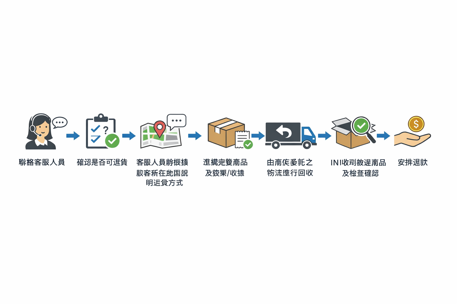 當退貨商品經 INI 收到並確認無誤後,您可選擇以下方式: